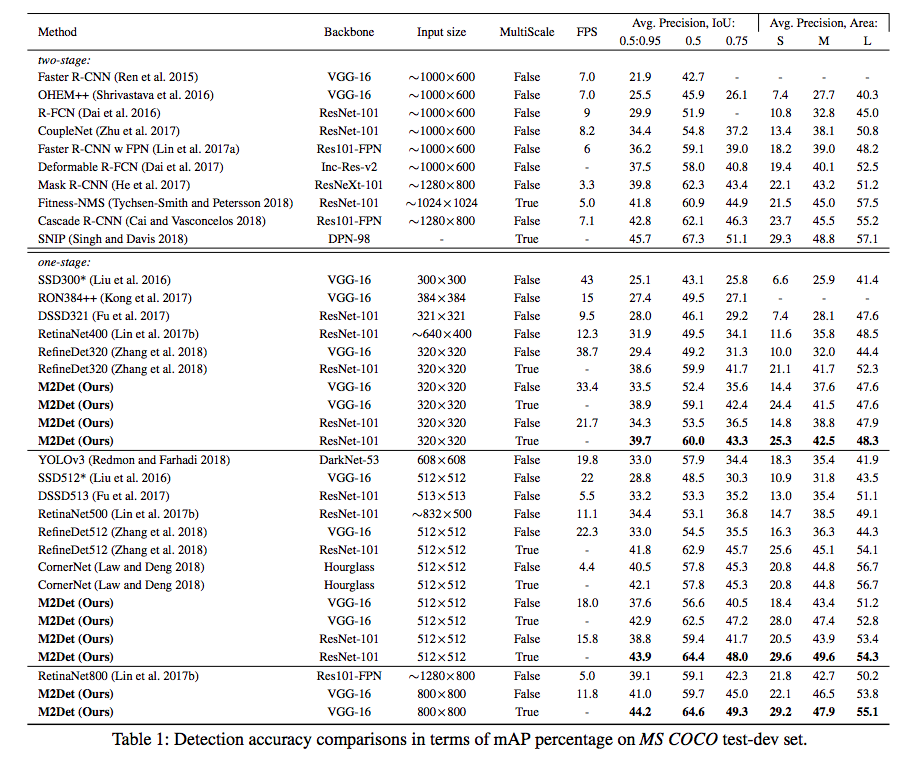 - Newly, in this work, we present Multi-Level Feature Pyramid Network (MLFPN) to construct more effective feature pyramids for detecting objects of different scales.