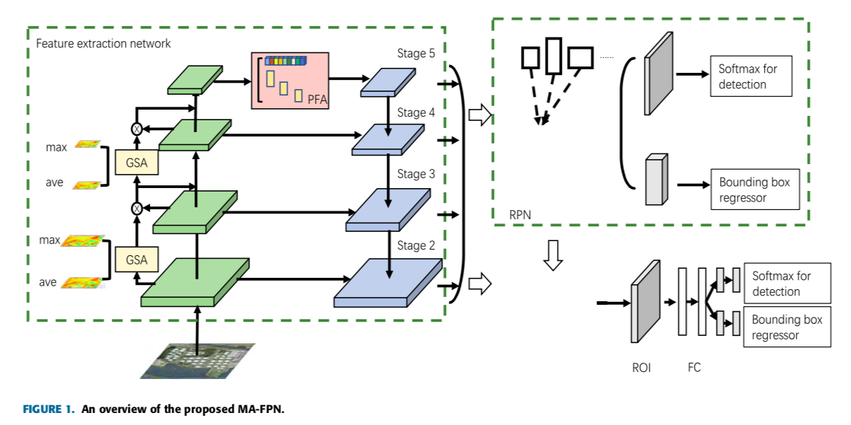 - According to feature pyramid network (FPN), we firstly put forward a global spatial attention module, which extracts spatial location-related information from shallow features and fuses it with deep features to enhance the position expression ability of deep features.