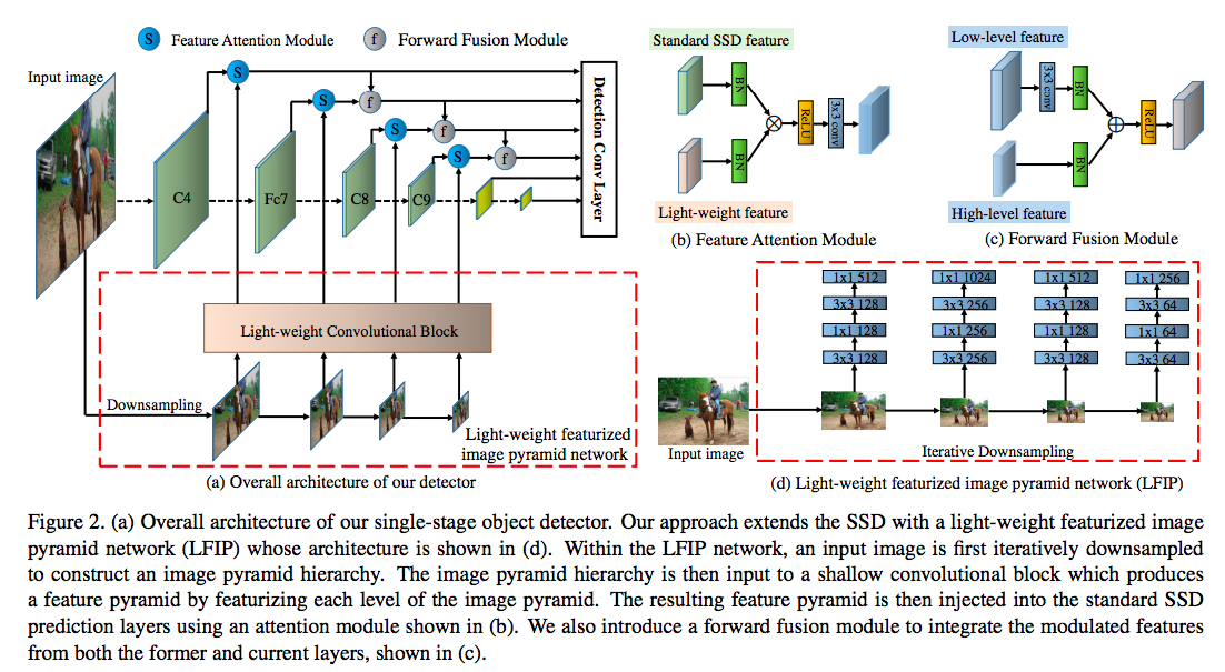 - In this paper, we introduce a light-weight architecture to efficiently produce featurized image pyramid in a single-stage detection framework. The resulting multi-scale features are then injected into the prediction layers of the detector using an attention module.