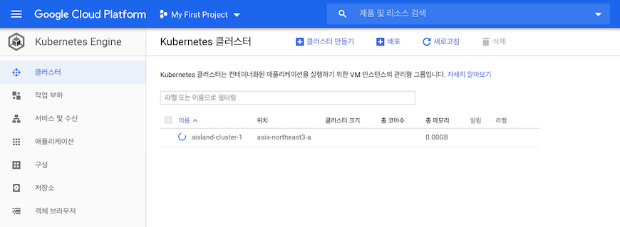 만들기를 클릭하게 되면 아래와 같이 클러스터가 생성됩니다.